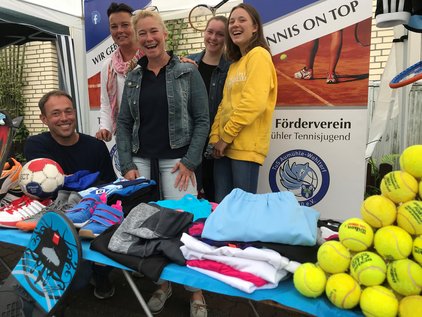 Was wir am Sonntag noch nicht verkaufen konnten, werden wir am Samstag, 31.8., bei unserem Kuchenstand ab 13 Uhr bei den Aumühle Open anbieten. Wer noch gut erhaltene Sportartikel spenden möchte - oder einen Kuchen zum Verkauf vorbei bringen mag - wir freuen uns! Meldet euch einfach per Mail an info(at)claudiariemer.de.