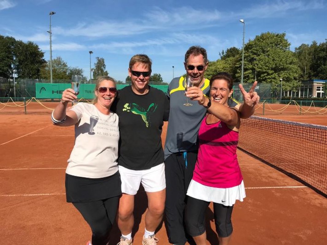 Zum 17. Mal fand das Offene Doppel- und Mixed-Turnier statt – und wir kamen zum ersten Mal in der Geschichte an unsere Grenzen: 70 Meldungen – mehr geht nicht. Dazu ein Traummix aus Wetter, Bewirtung und ganz viel guter Laune auf und neben den Plätzen. Spannende Spiele, das Wiedersehen mit alten und neuen Bekannten und die proppevolle Party am Samstag sorgten dafür dass die Aumühle Open den Titel Kultturnier auch 2018 zu Recht verteidigten. Und der Förderverein der Tennisjugend freut sich über knapp 200 Euro aus dem Kuchenverkauf und über eine Spende von 250 Euro, die das Turnier als Überschuss erwirtschaftet hat. Neue Mitglieder sind natürlich auch nach dem Turnier stets willkommen. Ein großes Dankeschön an alle, die auch dieses Jahr dafür gesorgt haben, dass Aumühle Open nicht nur großes Tennis bot. Besonderer Dank gilt Tim Schulz und Stefan Birr für ihre sehr großzügigen Spenden.